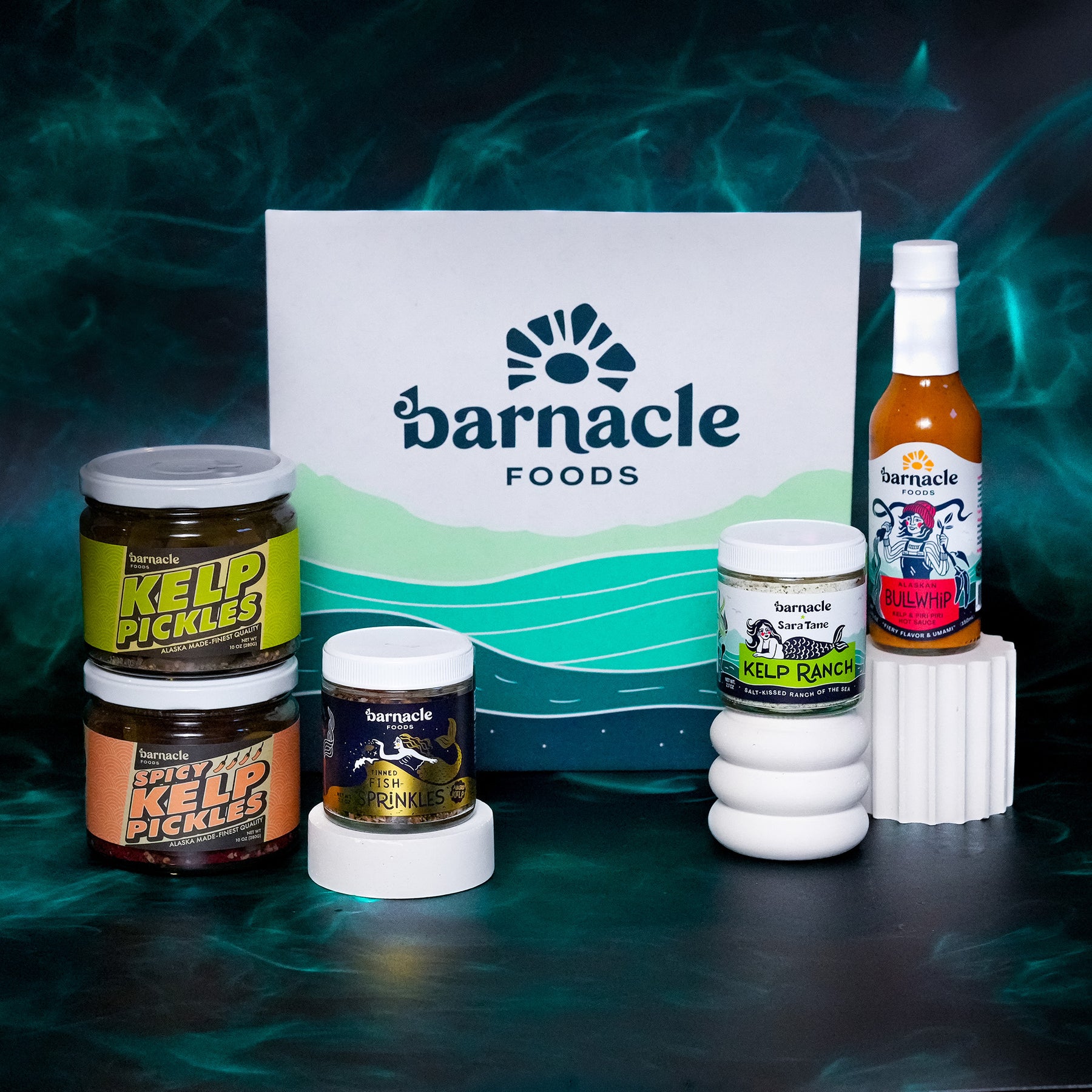 Give the gift of coastal wonder this year with the Kelp Pickle & Dill-ights Gift Box. This box is a palate-tingling journey, where bright tangy pickles, gently warming hot sauce, and ocean-inspired umami seasonings come together in unforgettable ways.